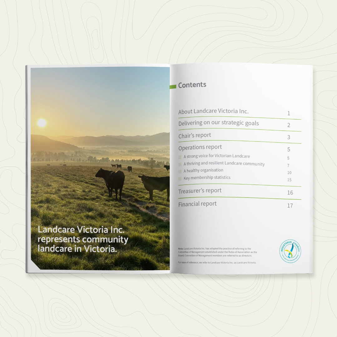 Landcare Victoria Inc. (LVI) support landcare communities to achieve integrated sustainable agriculture and environmental outcomes. Landcare Victoria’s vision is for rich and diverse Victorian landscapes, supporting productive farming, healthy ecosystems and thriving communities.