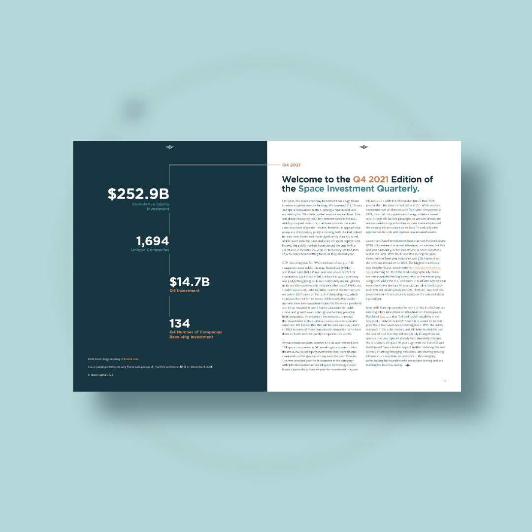 Space Capital is an early-stage venture capital firm investing in the emerging sector of the space economy and its technologies.