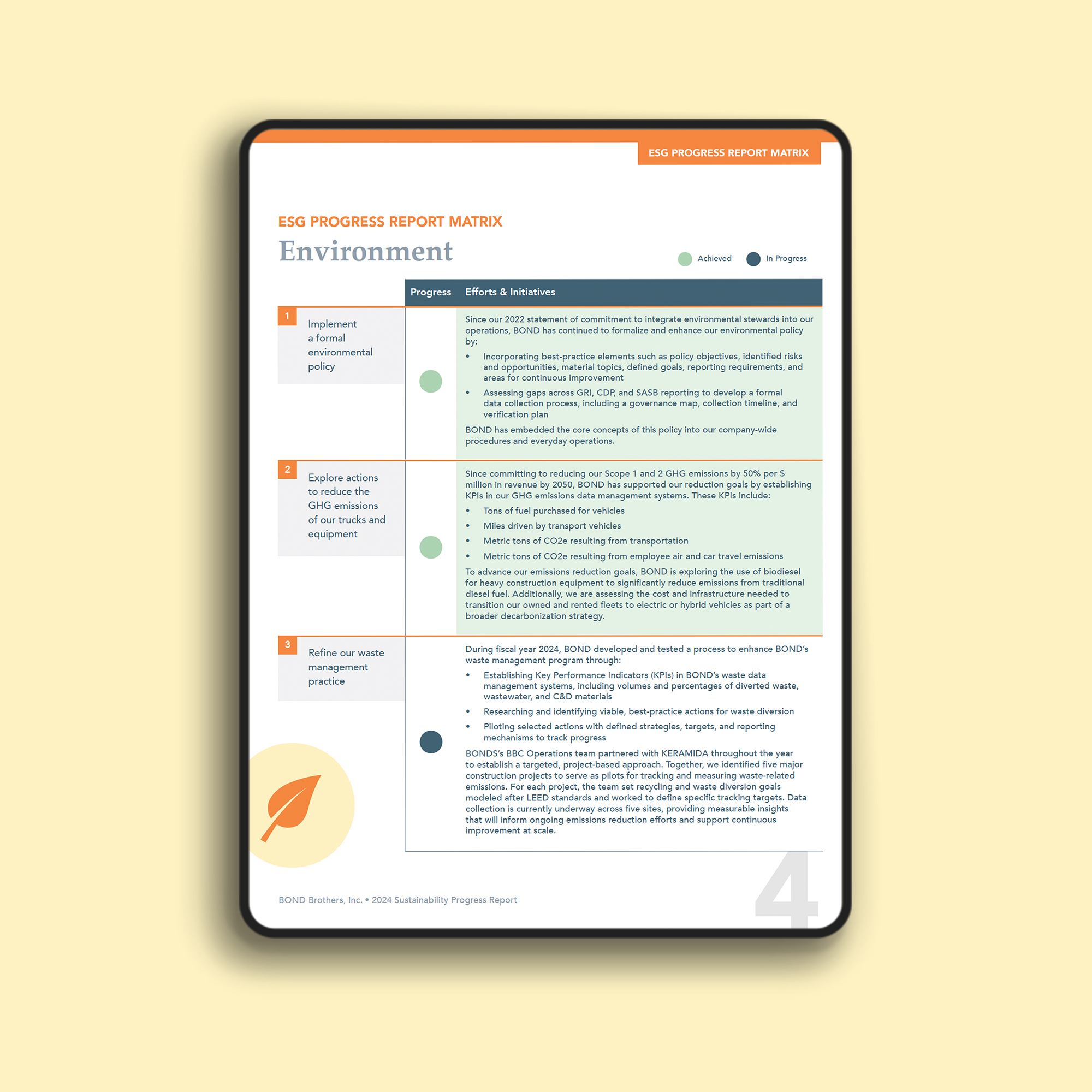 - Materiality Assessments and GHG Inventories: We help you present complex data, such as materiality assessments and greenhouse gas emissions inventories, in a visually appealing and easy-to-understand format.